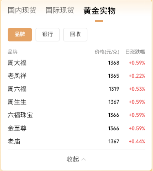 根据每天更新的价格,12月23日黄金实物价格如下: